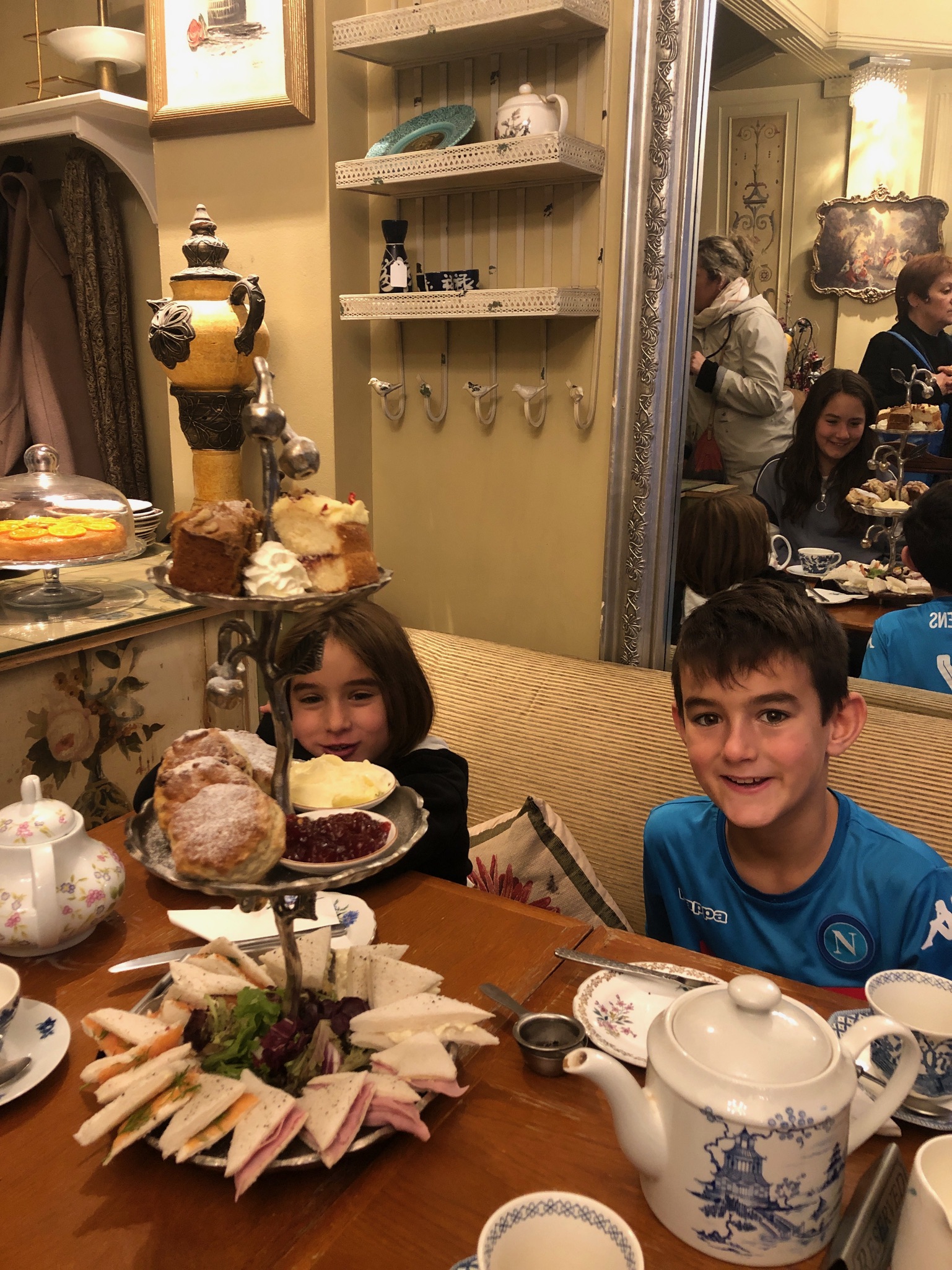 Candella Tea Room – This was a highlight for the kids and we loved it too. It was like going to your British grandma’s for tea in her cozy little dining room. We ate delicious biscuits and scones with clotted cream, finger sandwiches and drank several different kinds of tea. It was all for only £15 per person (way less than going to Harrods, which is £60-80 per person). Be sure to make a reservation.